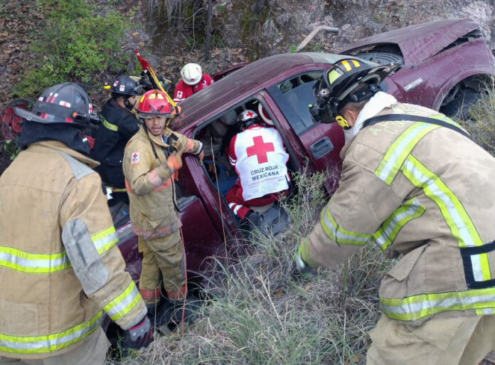 Cinco personas fueron hospitalizadas a raíz de las lesiones sufridas en un fuerte accidente, en el que la camioneta tipo pick-up en la que viajaban quedó prácticamente destruida al salir abruptamente del camino.