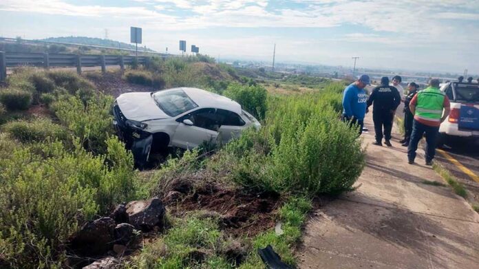 El automóvil, un Volkswagen Vento con placas del estado de Coahuila, golpeó la guarnición y tras subir la banqueta dio una voltereta, para al final acabar fuera del camino, pero sobre sus cuatro ruedas.