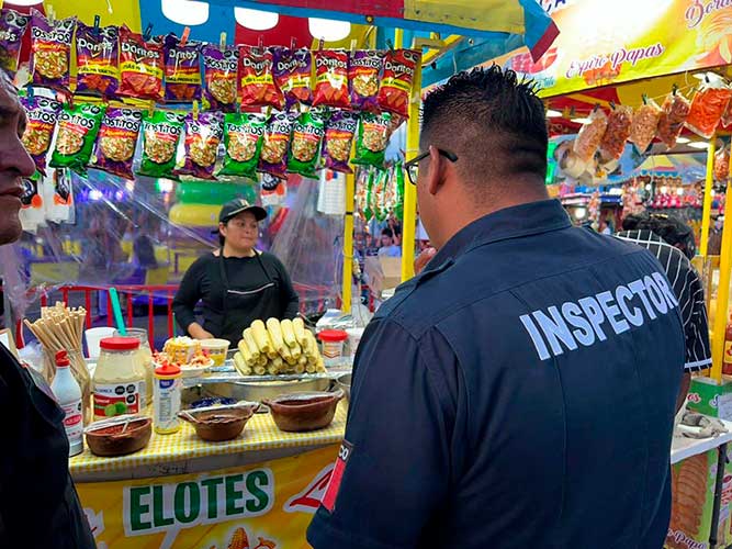 Por ejemplo, diariamente el equipo de inspección recorre el recinto ferial, centrándose en la revisión de puestos con instalaciones de gas LP, lo que ha sido clave para mantener un entorno seguro en el área de alimentos.