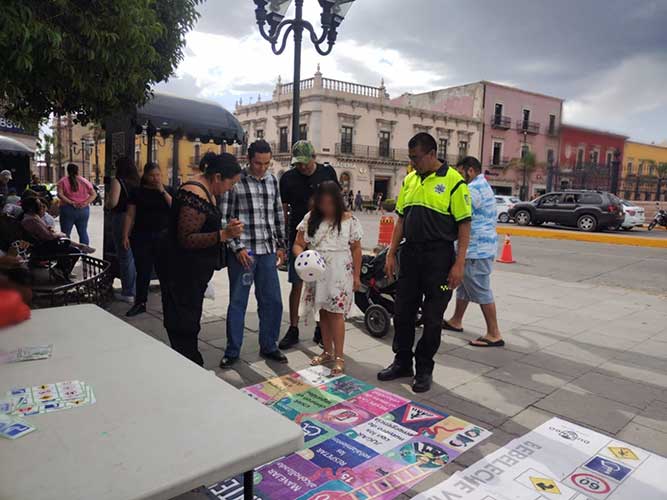 El Departamento de Educación Vial de la Policía Municipal ha puesto en marcha una divertida iniciativa para acercar las reglas de tránsito a los más pequeños de casa. Durante esta temporada vacacional, los agentes han instalado juegos de mesa como serpientes y escaleras y lotería vial en la plaza del Centro Histórico, convirtiendo el aprendizaje en una experiencia lúdica y entretenida.