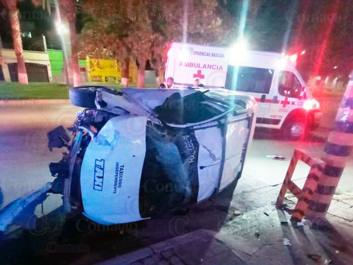 Un taxista que conducía su unidad de transporte público en estado de ebriedad, fue hospitalizado luego de impactar contra un poste y volcarse en el bulevar Domingo Arrieta, en un hecho de tránsito ocurrido este lunes por la madrugada.