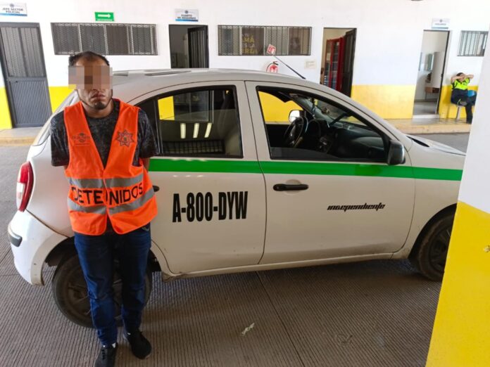 Elementos de la Policía Municipal detuvieron a un sujeto que acababa de robar un automóvil habilitado como taxi; además, aseguraron dicha unidad motriz, a bordo de la cual estaba el presunto delincuente.