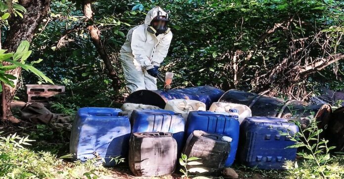 De acuerdo a lo difundido por la Secretaría de Seguridad y Protección Ciudadana, se aseguraron 2 mil 470 litros de sustancias químicas.