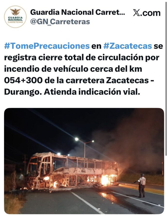 Automovilistas y choferes reportaron tráfico detenido en la carretera federal 45, en la salida de Fresnillo rumbo a Zacatecas, debido a los hechos registrados durante la madrugada de este viernes.