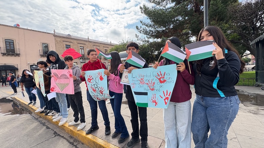 La protesta, que congregó a alumnos de diversas instituciones educativas, como el Telebachillerato Cristóbal Colón”, La secundaria “Federico Engels” y los moradores de la Casa del Estudiante “Gral. Francisco Villa” se desarrolló de manera pacífica, donde los manifestantes, portando pancartas y consignas, formaron un simbólico lazo humano en solidaridad con las víctimas de Gaza, entre ellos Mujeres, Niños y jóvenes.
