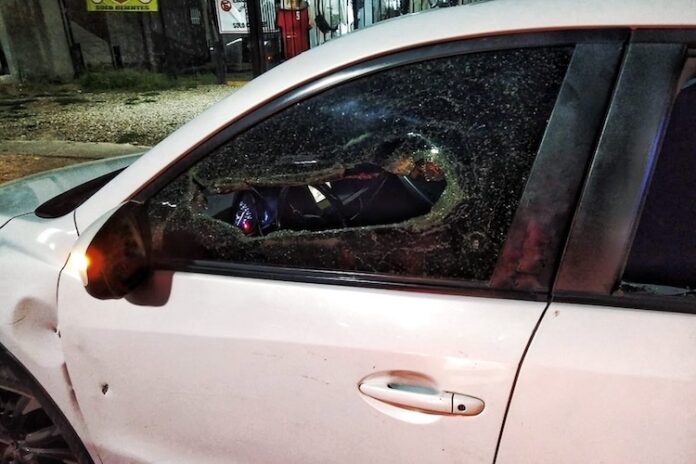 Esta resultó con afectaciones significativas en varios de sus cristales, mientras que su conductor también habría recibido algunos golpes.