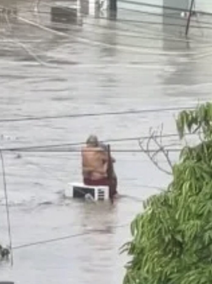En el video se observa al hombre sentado sobre un aparato de aire acondicionado mientras su esposa lo abraza con fuerza, sin soltarlo en ningún momento, mientras las corrientes de agua inundan por completo el lugar. La pareja, visiblemente cansada y empapada, esperaba la llegada de los equipos de rescate, que finalmente lograron auxiliarlos horas después.