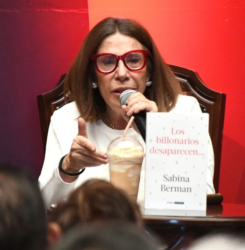 Durante su intervención, Sabina Berman presentó “Los billonarios desaparecen”, una novela que combina sátira política, suspenso e imaginación social. La historia se desarrolla durante una cumbre mundial de líderes en Davos, donde, de forma inesperada, los hombres y mujeres más ricos del planeta comienzan a desaparecer sin dejar rastro.