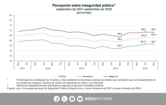 Para el pasado mes de septiembre la percepción de inseguridad llegó a 49.6%, teniendo un aumento de 13% en el tercer trimestre de 2025.