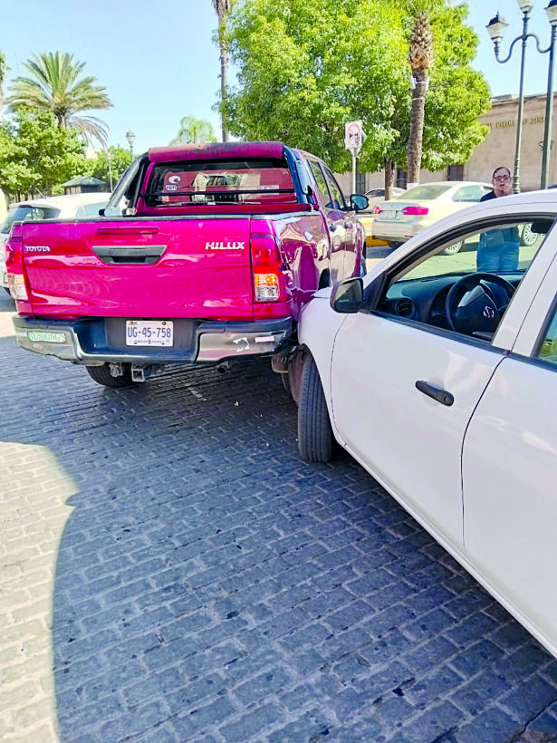 Durango, Dgo.- Un automovilista sinaloense provocó un aparatoso choque en el centro de la ciudad, que generó congestionamiento, dado que la avenida 20 de Noviembre quedó parcialmente bloqueada.