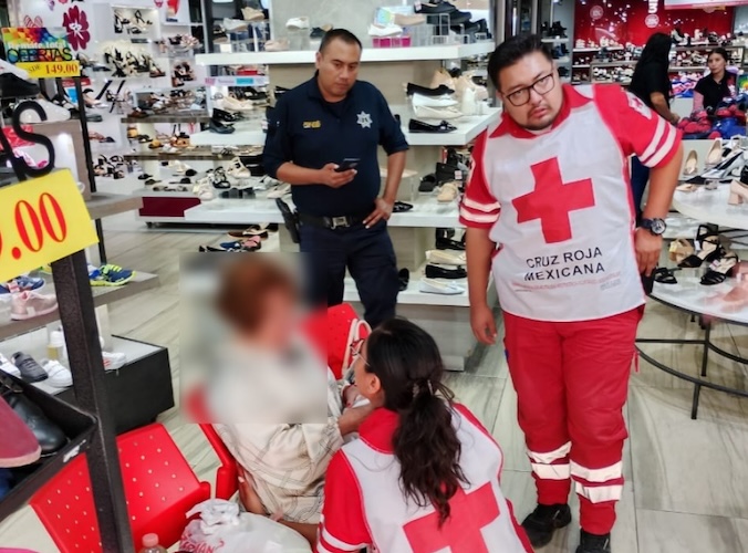 De inmediato, personal de una zapatería 3 Hermanos salió para apoyarla, la llevó a una silla dentro del establecimiento y pidieron presencia de personal médico.