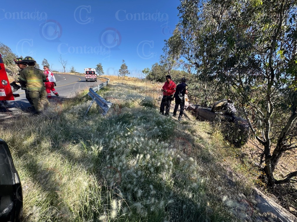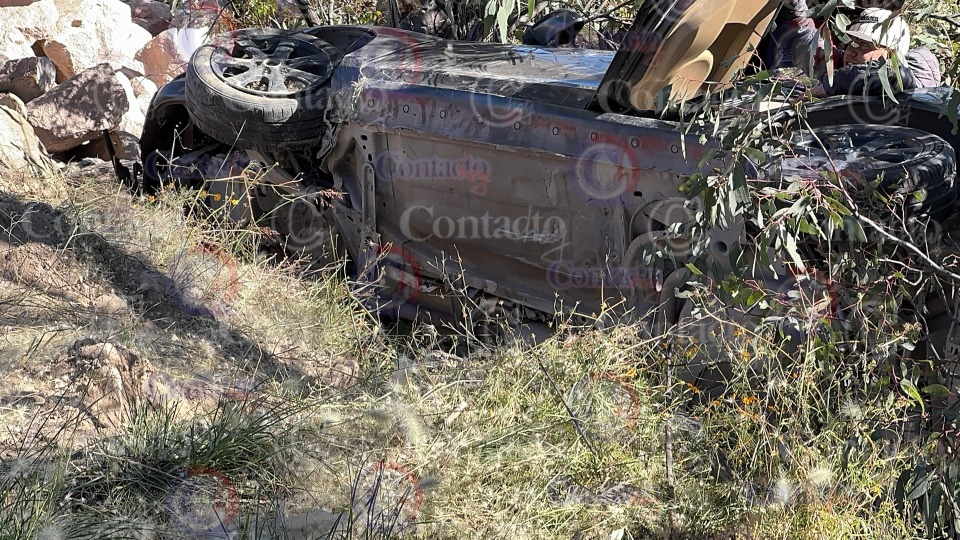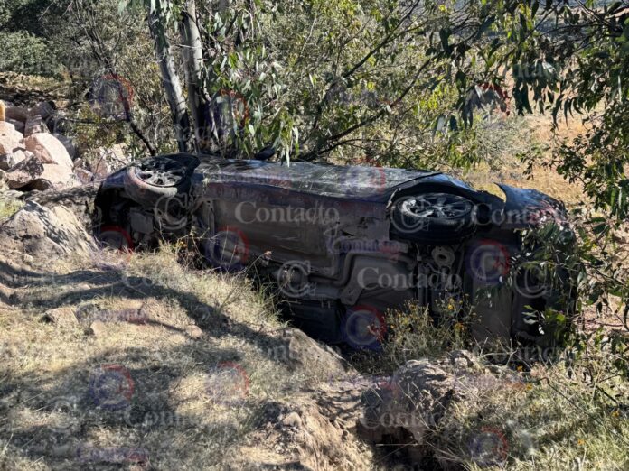 El siniestro se dio cuando el conductor del automóvil de color negro, sin placas de circulación, perdió el control en una curva y salieron hacia la terracería contigua.