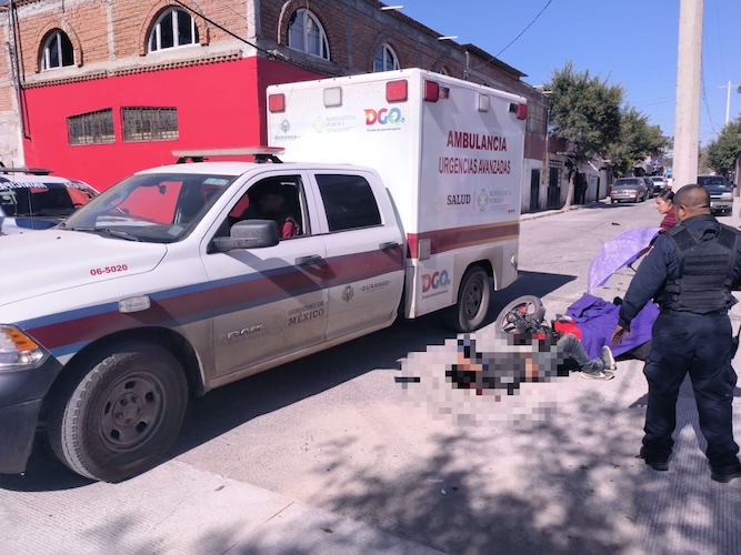 Tres personas fueron trasladadas a la ciudad de Durango desde Mezquital tras ser víctimas de un fuerte accidente de tránsito, en el que estuvo involucrada una transeúnte y dos motociclistas.