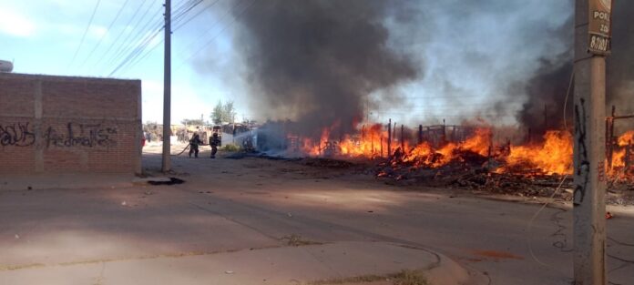 Tres jacales construidos con materiales frágiles fueron destruidos por el fuego en un aparatoso incendio ocurrido en el fraccionamiento San José III.