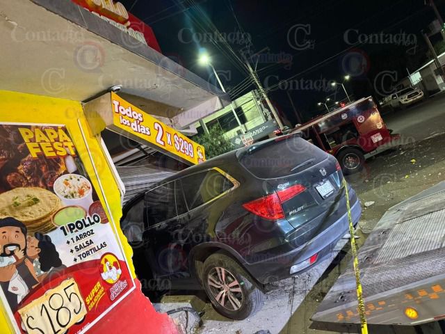 Un conductor aparentemente ebrio se impactó anoche contra un negocio de pollos asados ubicado en el primer cuadro de la ciudad; el varón resultó con algunas lesiones, aunque no de gravedad.