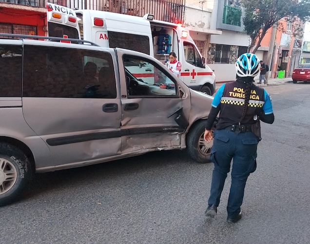 Los hechos ocurrieron cuando el vehículo de manufactura japonesa iba por la calle Negrete de poniente a oriente y, al llegar al cruce con Miguel de Cervantes, se encontró con la mini van.