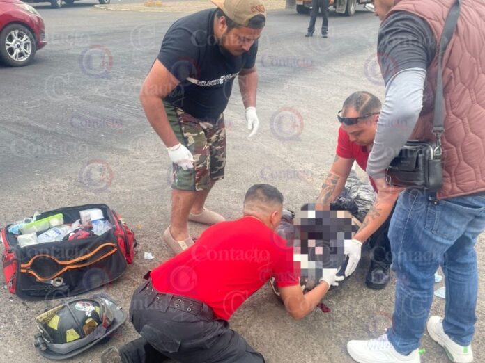 El fuerte impacto provocó que el motociclista cayera, sufriendo lesiones en varias partes del cuerpo, incluida la región craneal.
