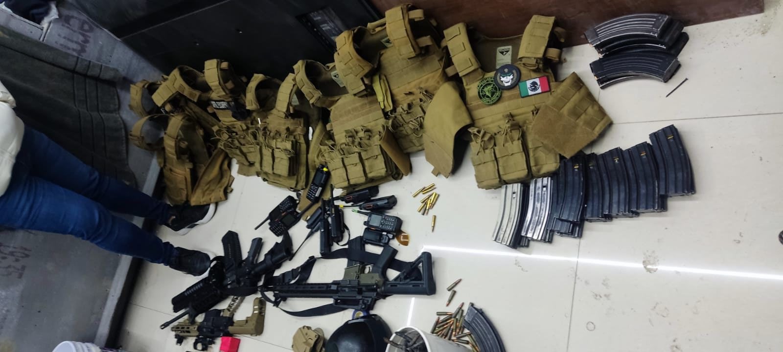 En la acción se aseguraron al menos tres armas largas, alrededor de 15 cargadores y decenas de cartuchos útiles, además de chalecos antibalas y tácticos y un par de inmuebles de la ciudad de Durango.