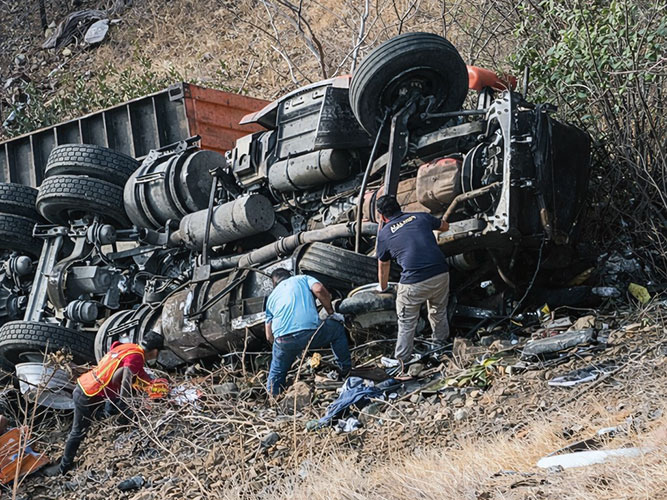 Por razones hasta ahora no precisadas, la unidad salió levemente del camino y eso fue suficiente para que acabara volcada al fondo de un barranco.