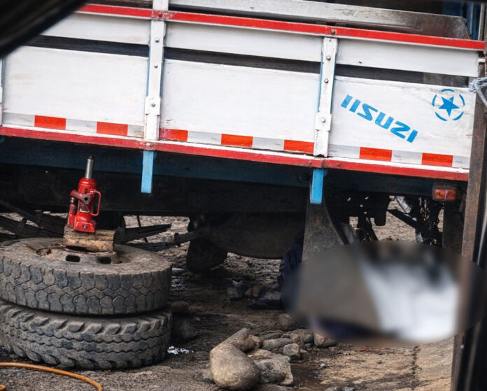 Ahí se detuvieron y retiraron una pieza que llevaron a soldar a un taller cercano y, cuando la instalaban de nuevo, falló el gato hidráulico que usaban para elevar el chasis del camión y este aplastó a la víctima.