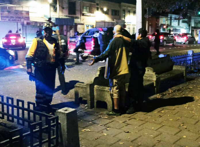 Policías municipales intervinieron para calmar un pleito iniciado por un sujeto que acusó a un barrendero de tirarle sus cosas a la basura; y es que el individuo en mención dejó la bolsa en una banca y el trabajador municipal pensó que eran desechos.