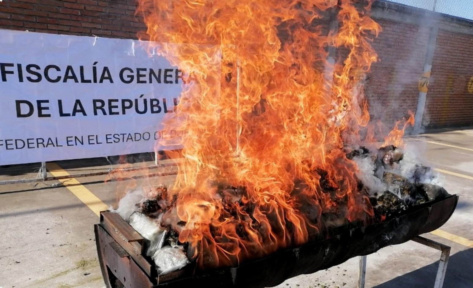 La Fiscalía General de la República informó que fueron destruidos poco menos de 14 kilogramos de enervantes y algunos otros objetos relacionados con delitos recientes que ocurrieron en Durango.