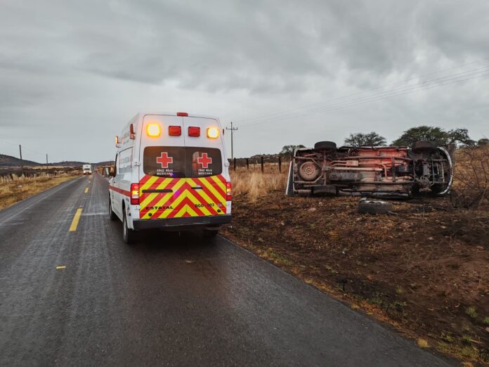 Un automovilista resultó con lesiones leves en la volcadura que sufrió en la carretera Francisco Zarco, hecho aparentemente derivado de una falla en uno de los neumáticos.