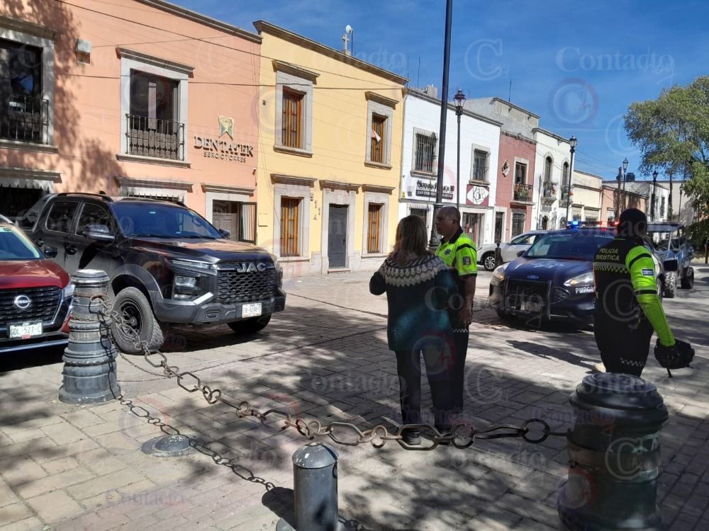 Elementos de la Policía Municipal apoyaron a una señora de 65 años de edad que se tornó agresiva luego de quedar “encajonada” en un espacio de estacionamiento del centro de la ciudad; los agentes tuvieron que sacarle el vehículo porque ella no logró hacerlo.