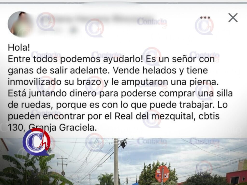 El señor suele encontrarse en la zona de Real del Mezquital, específicamente por Cotis 130, Granja Graciela, donde vecinos y automovilistas pueden apoyarlo comprándole una paleta o brindándole algún tipo de ayuda solidaria.