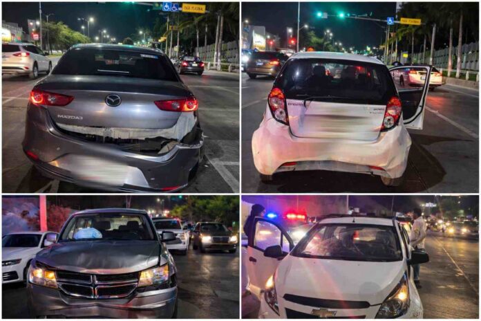 Un accidente múltiple, ocurrido este viernes por la noche en el bulevar Guadiana, dejó como consecuencia lesiones en cuatro personas y daños en un total de cinco vehículos.