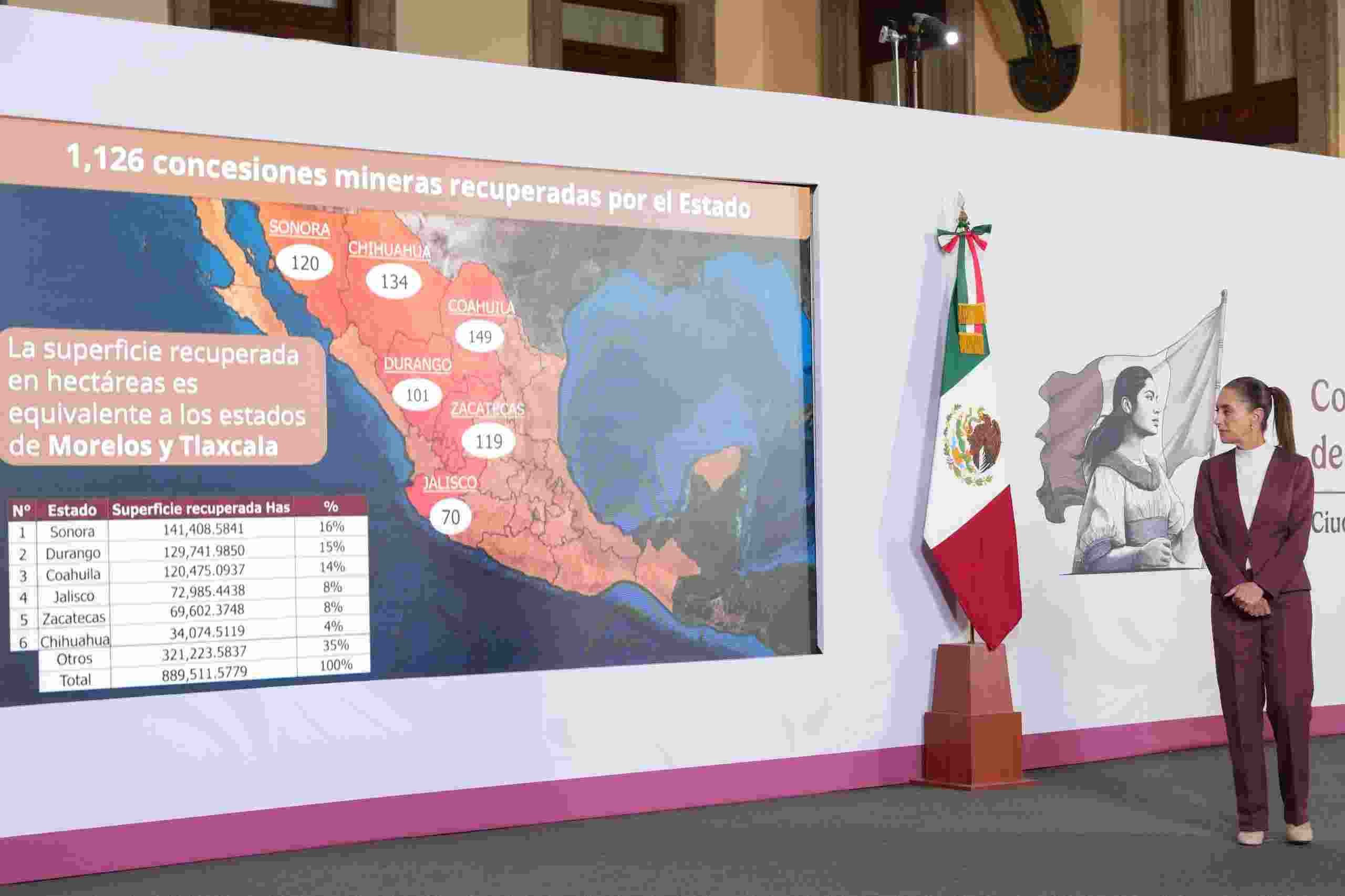 En total, el Gobierno federal informó la recuperación de mil 126 concesiones mineras en el país, que abarcan 889 mil 512 hectáreas. De esa superficie, 129 mil 741.98 hectáreas corresponden a Durango, colocándolo como el segundo estado con mayor extensión recuperada, solo por debajo de Sonora.