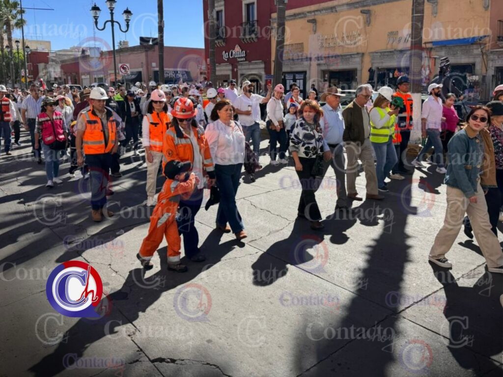 La marcha, convocada como un acto pacífico de homenaje y exigencia de justicia, se llevó a cabo a las 11:00 horas en la Av. 20 de Noviembre. Los participantes portaron cascos, camisas blancas y chalecos mineros como símbolo de respeto hacia sus compañeros.