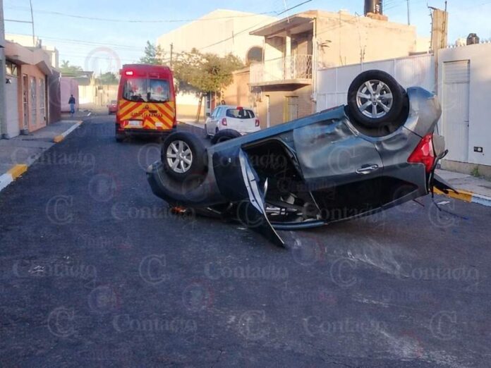 Un adulto y una niña con golpes leves, así como un vehículo en pérdida total, es el saldo de un aparatoso hecho de tránsito ocurrido este miércoles por la mañana en el centro de la ciudad; el presunto responsable del siniestro se dio a la fuga.