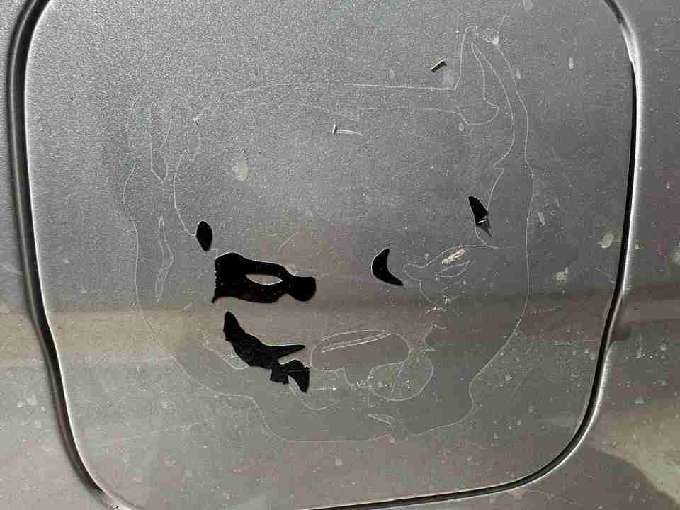 El involucrado explicó que sufre un trauma de infancia relacionado con estos animales, por lo que al ver la calcomanía, se alteró, decidió desprenderla y ya no pudo detenerse.