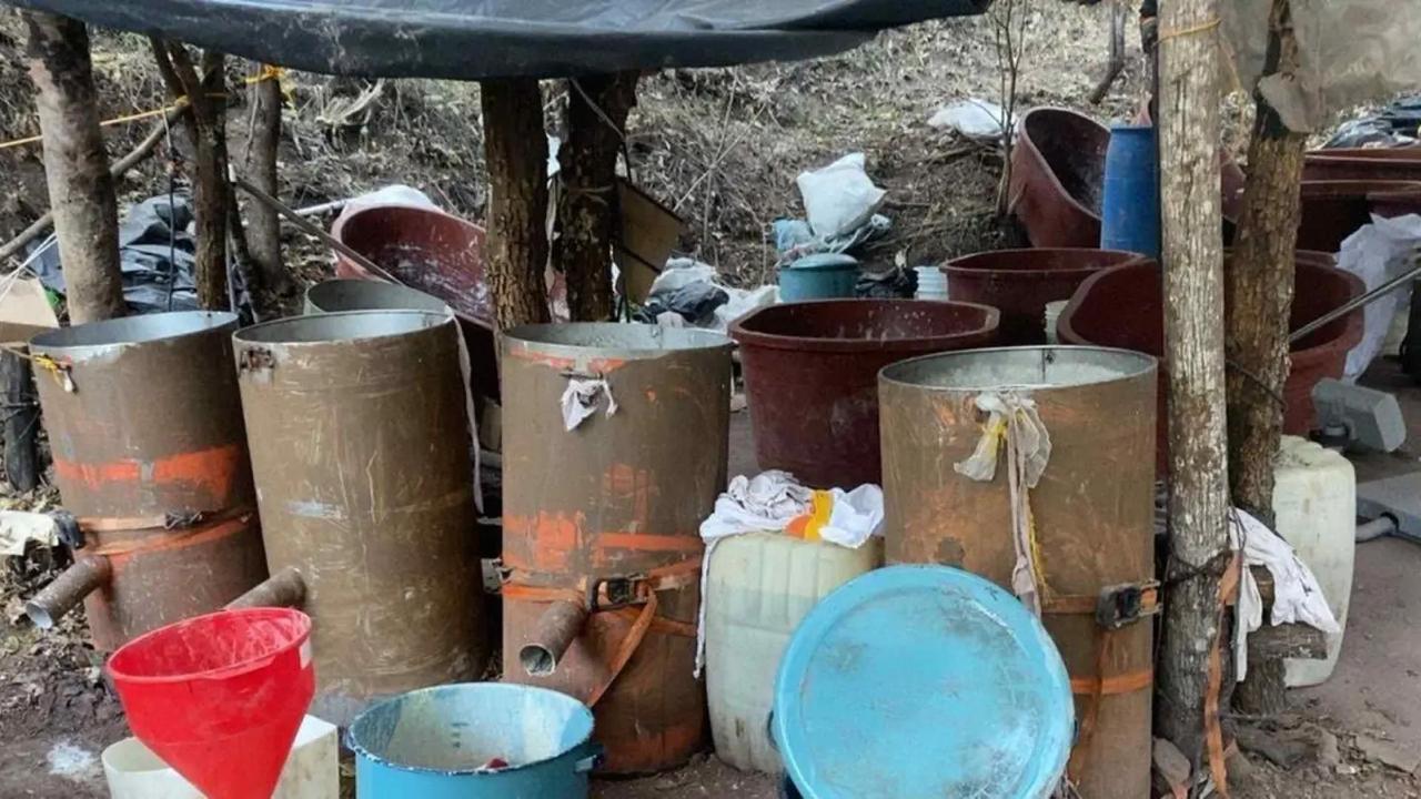 También se incautaron 26 toneladas de sosa cáustica, 900 kilogramos de cianuro y 10 kilogramos de aluminio, además de reactores, condensadores, mezcladoras, tanques y contenedores usados en el proceso de elaboración de droga.