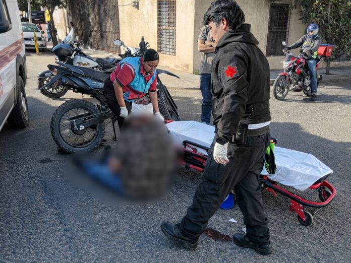 Tras el fuerte choque, llegó al sitio personal del Sistema Estatal de Emergencias Médicas, que se hizo cargo del traslado de la víctima al Hospital General 450 con el fin de descartar afectaciones graves.