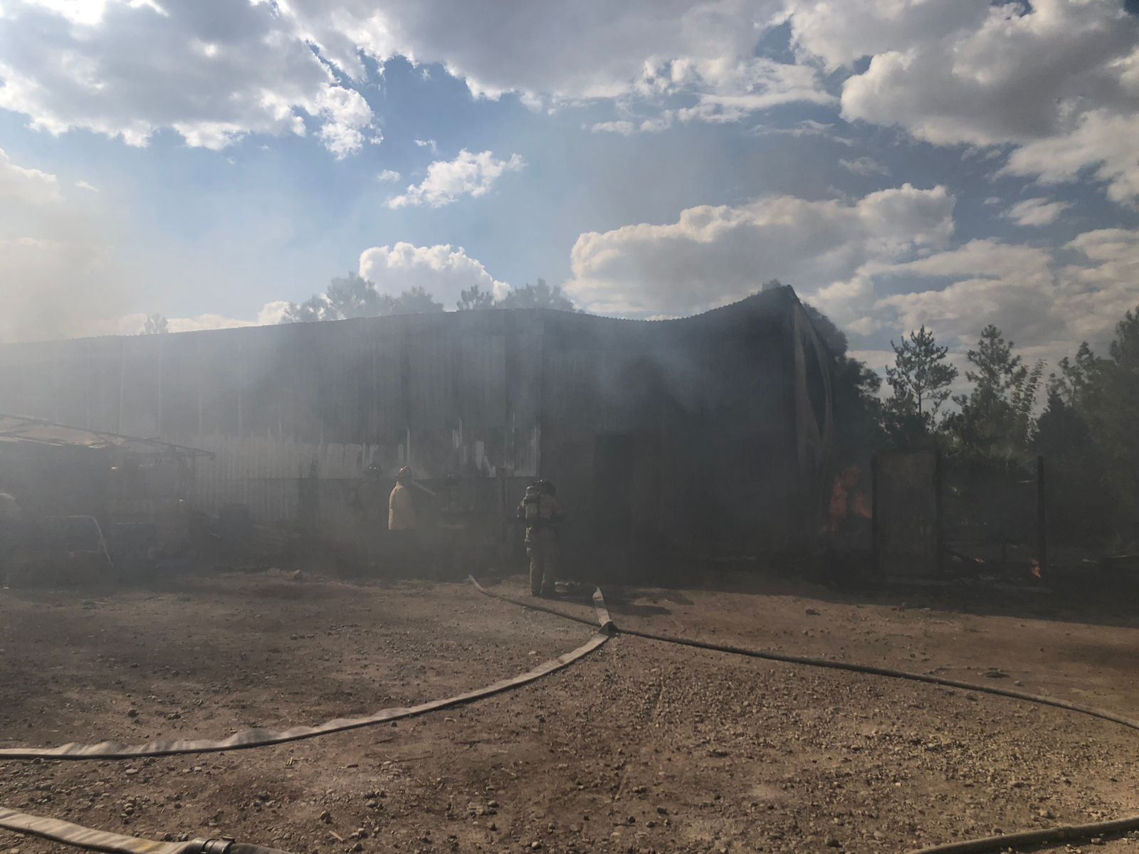 Al llegar, se encontraron con fuego que se extendía rápidamente dentro y fuera de una bodega, en cuyo interior había materiales de construcción, solventes y algo de combustible destinado a la operación de vehículos pesados.