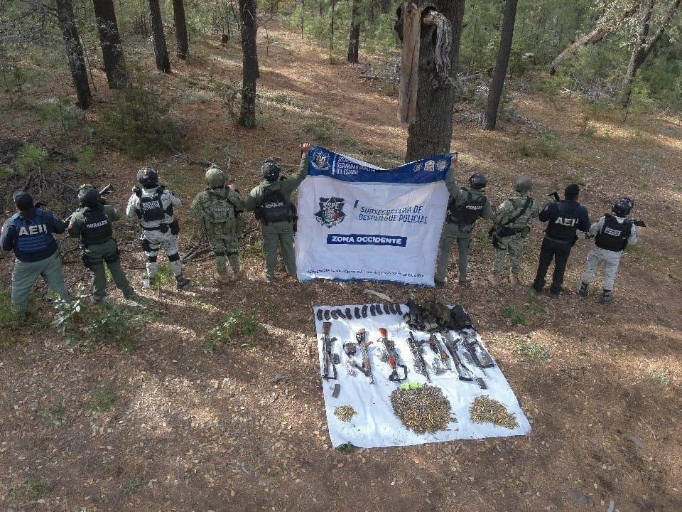 Una vez inspeccionados los alrededores, tarea que quedó a cargo de la Policía Rural de Chihuahua, se aseguraron 7 armas largas, 14 cargadores, chalecos, equipo táctico y cientos de cartuchos útiles.