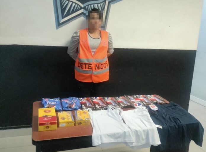 Una mujer de 40 años de edad fue detenida luego de robar casi 2 mil persos en mercancía de una tienda de autoservicio ubicada en la zona sur de la ciudad; la fémina fue retenida por los vigilantes y arrestada por policías.