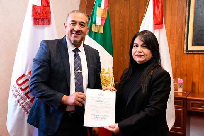 En la oficina de la rectoría del Edificio Central de la Universidad Juárez del Estado de Durango (UJED), el rector Ramón García Rivera tomó protesta a la Lic. Ana Bertha Adame García como nueva subsecretaria administrativa de la institución. Durante la ceremonia, el rector destacó que la nueva funcionaria será un gran complemento para el equipo de trabajo, el cual está conformado por universitarios distinguidos, comprometidos con el bienestar de toda la comunidad juarista.