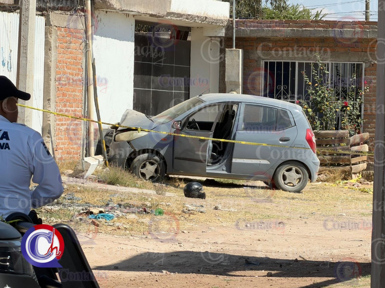 Al ver lo ocurrido, el afectado inició una persecución y, en la colonia Miguel Cruz José, el motociclista derrapó y cayó. El conductor del coche también se descontroló y chocó contra una fachada.