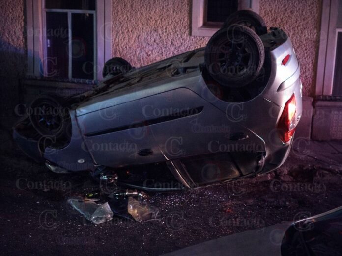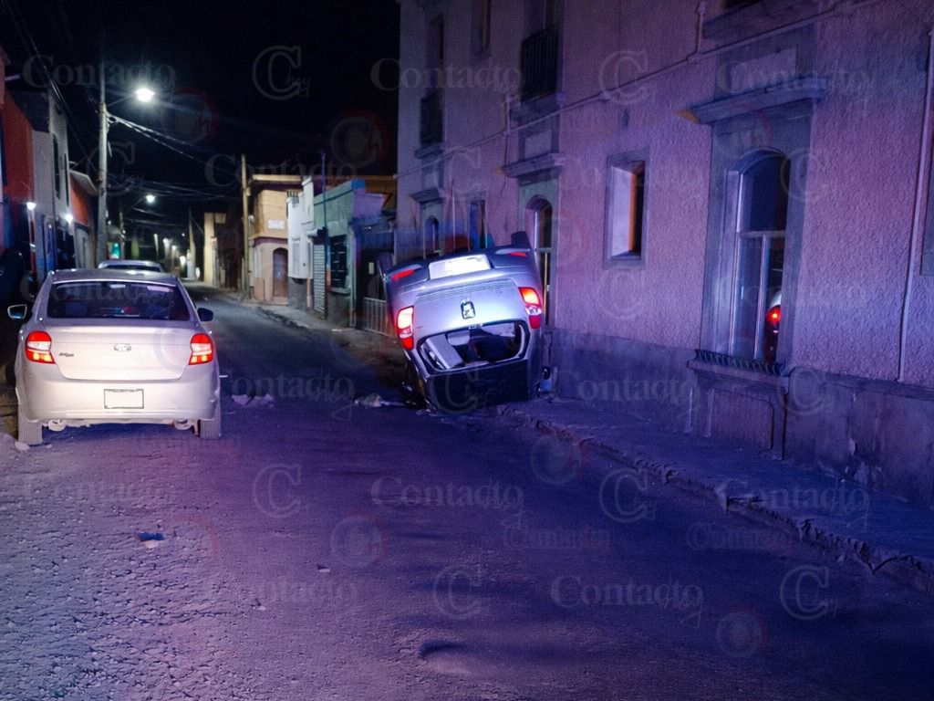 En medio de su condición, impactó contra un Ford Figo que estaba estacionado y eso le hizo descontrolarse por completo, lo que provocó que el pequeño coche diera una voltereta y acabara con sus cuatro ruedas hacia arriba.